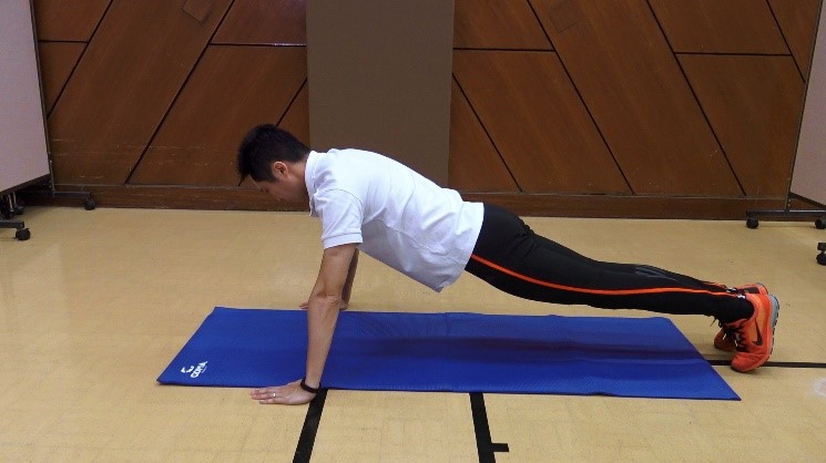 | 4. | 30-second Squat Thrust | Stand straight at the front of a mat. Squat down and touch the mat with both palms pressing on the ground and holding both arms straight. Kick both feet backward into plank while keeping both arms straight. Jump both feet forward to return to squat. Stand up and raise both arms to finish one set. Complete at least six sets. |